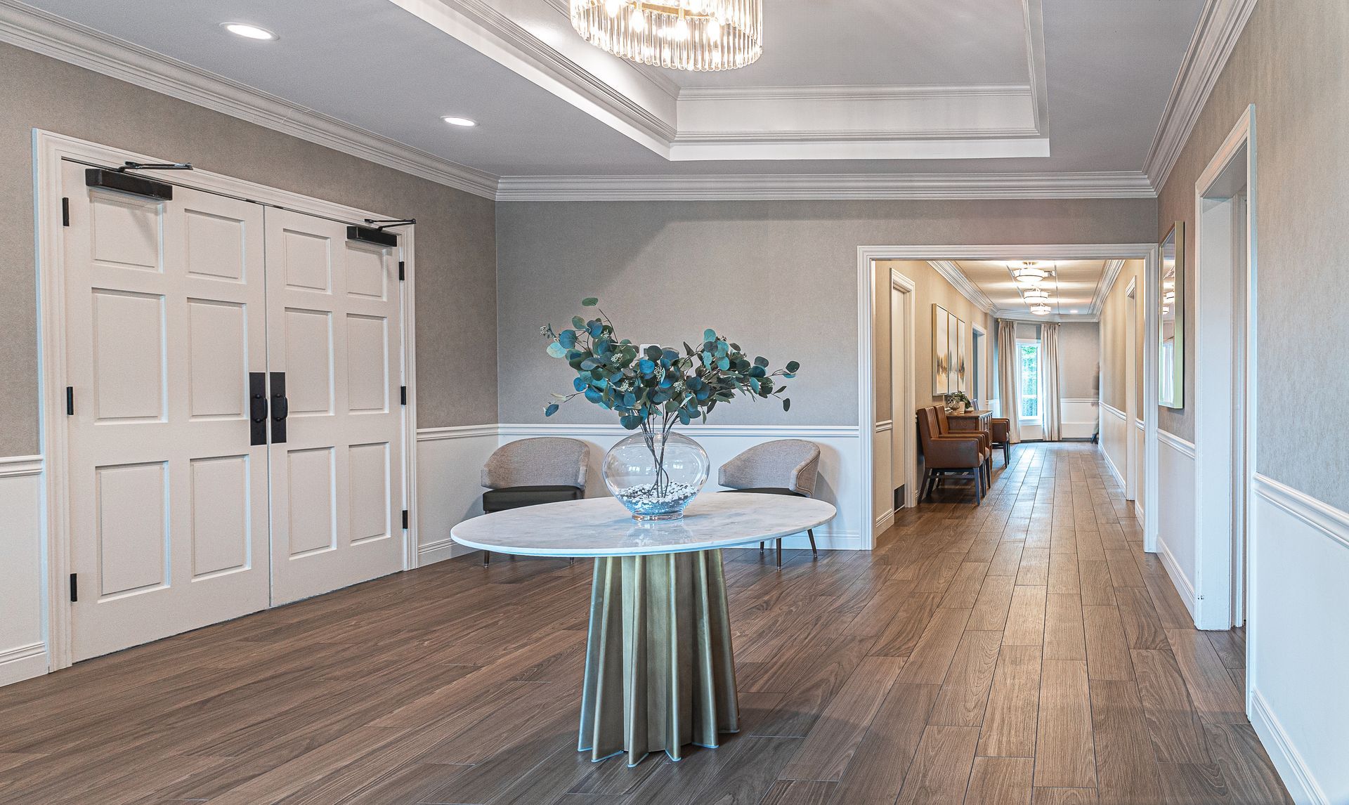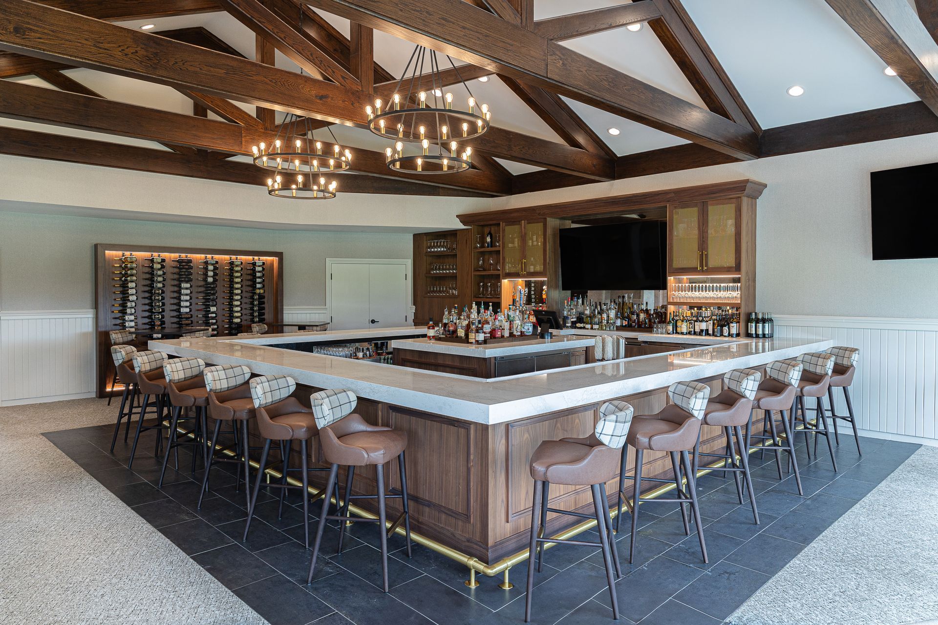 A longstanding fixture in the Fox Valley community, St. Charles Country Club is known for its rich history, beautiful grounds, and tradition of excellence. To match its prestige, the clubhouse underwent a full refresh and modernization. Through interior design services, furnishings, and carefully curated artwork, KDI revitalized the space by adding a large bar, updating dining areas, and reimagining the ballroom with neutral, timeless finishes—creating an elegant and versatile setting for private events, member gatherings, and celebrations for years to come.